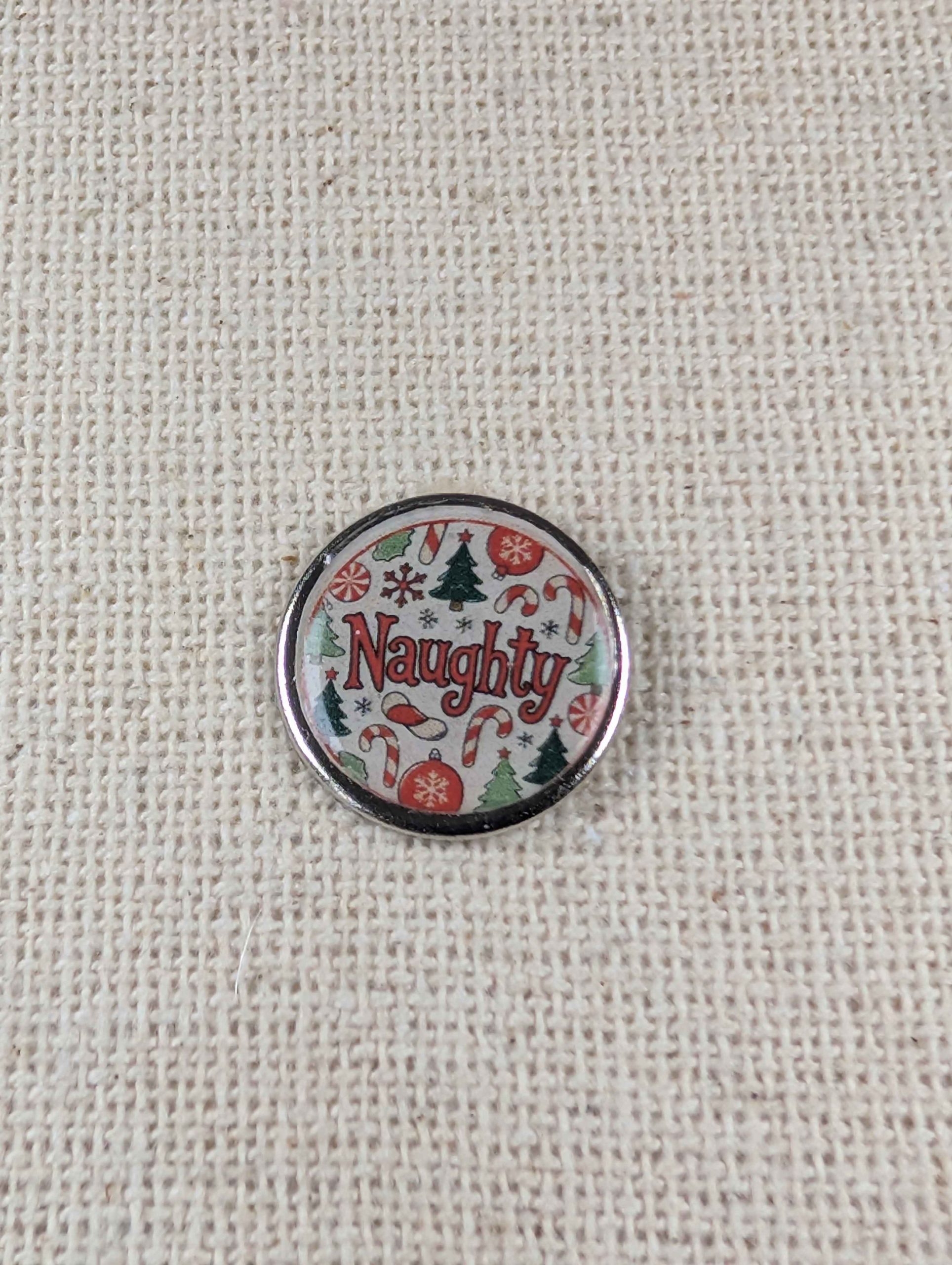 Spread the festive joy with this sweet and simple Christmas ‘Naughty’ badge, because everyone needs a little holiday sparkle!