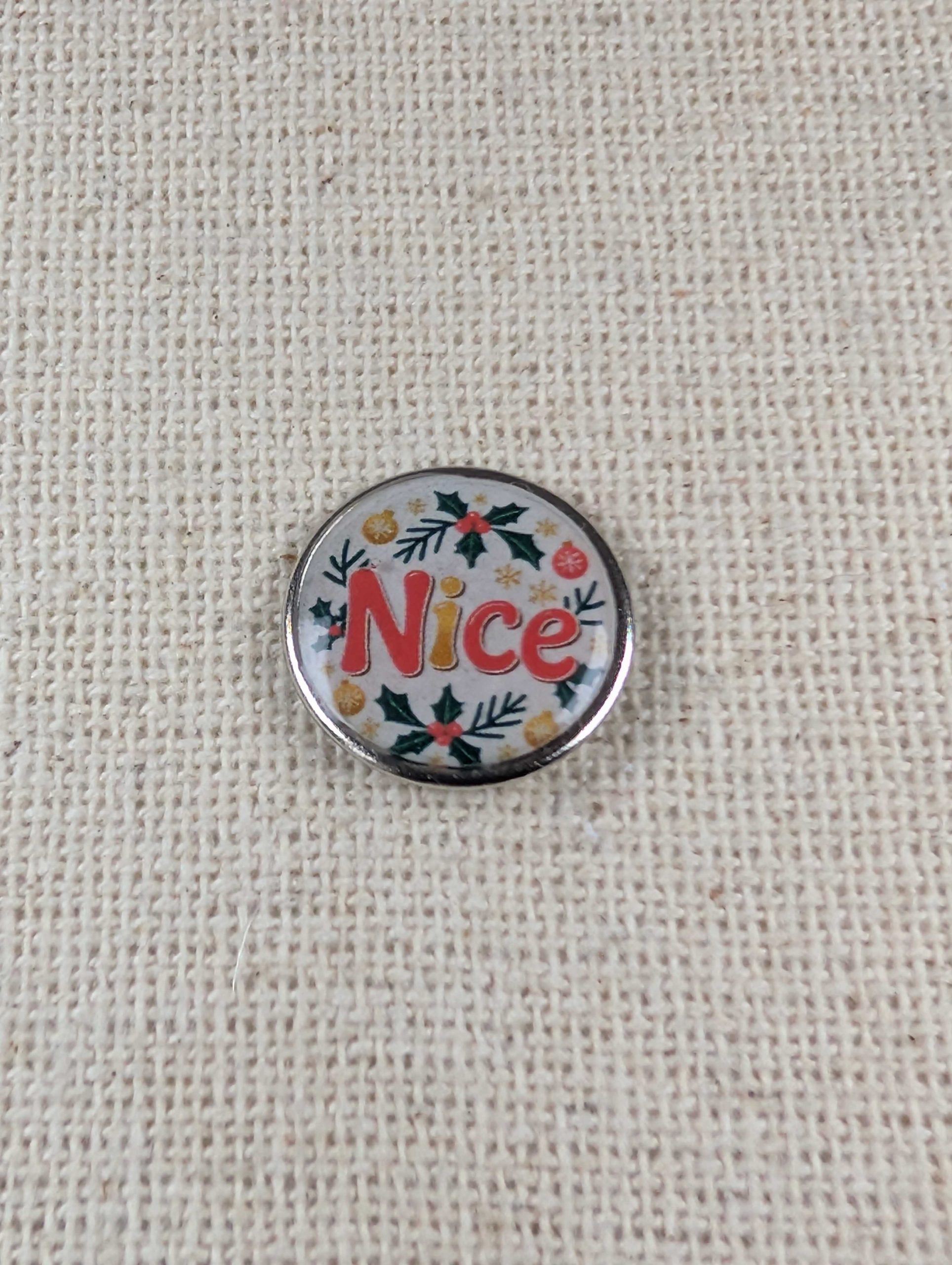 Nice – Christmas Badge – Christmas Themed Badge – Large Resin Topped Pin Badge