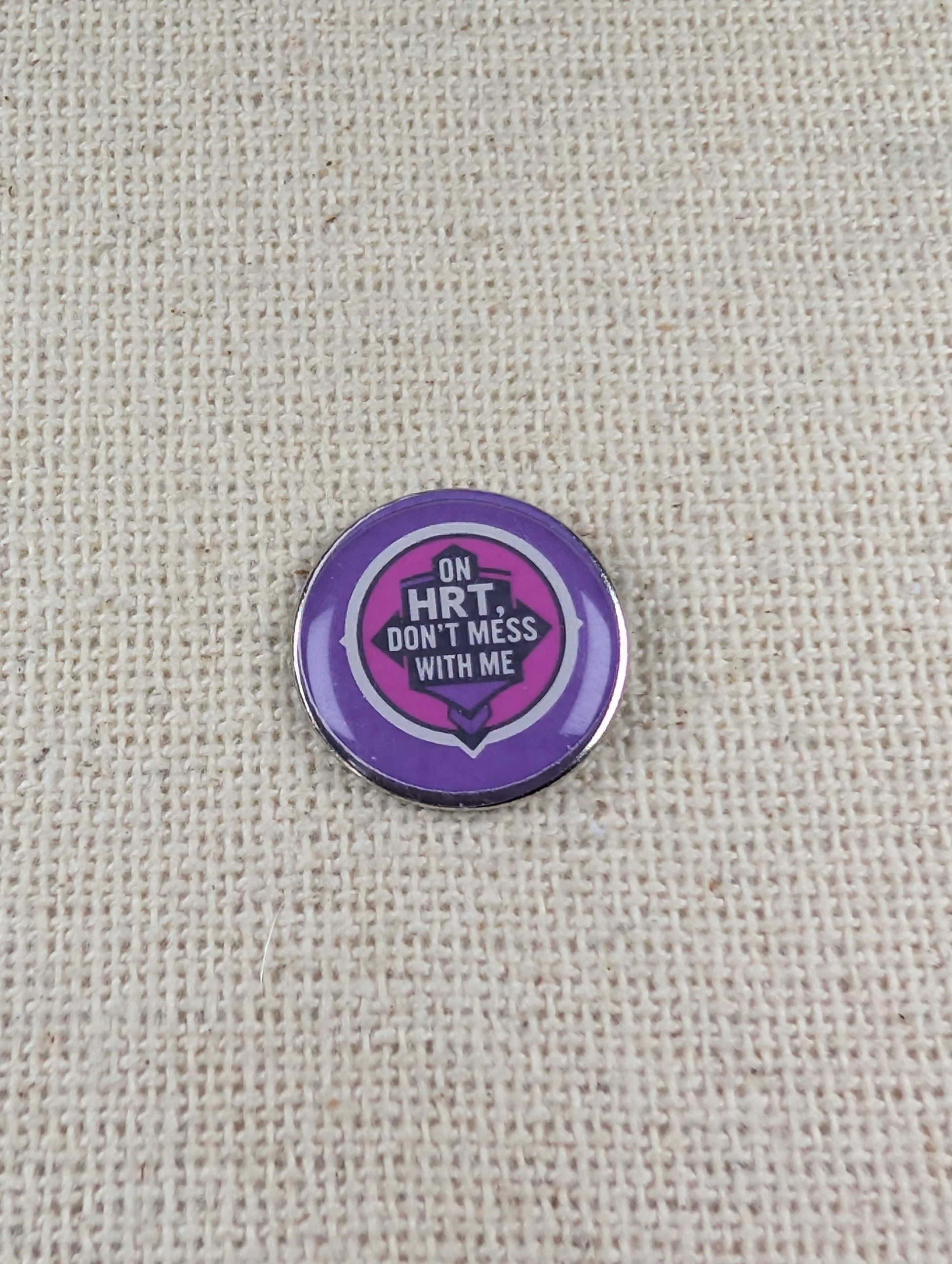 18mm round pin it consists of a unique design that says I’m on HRT, Don’t Mess With Me