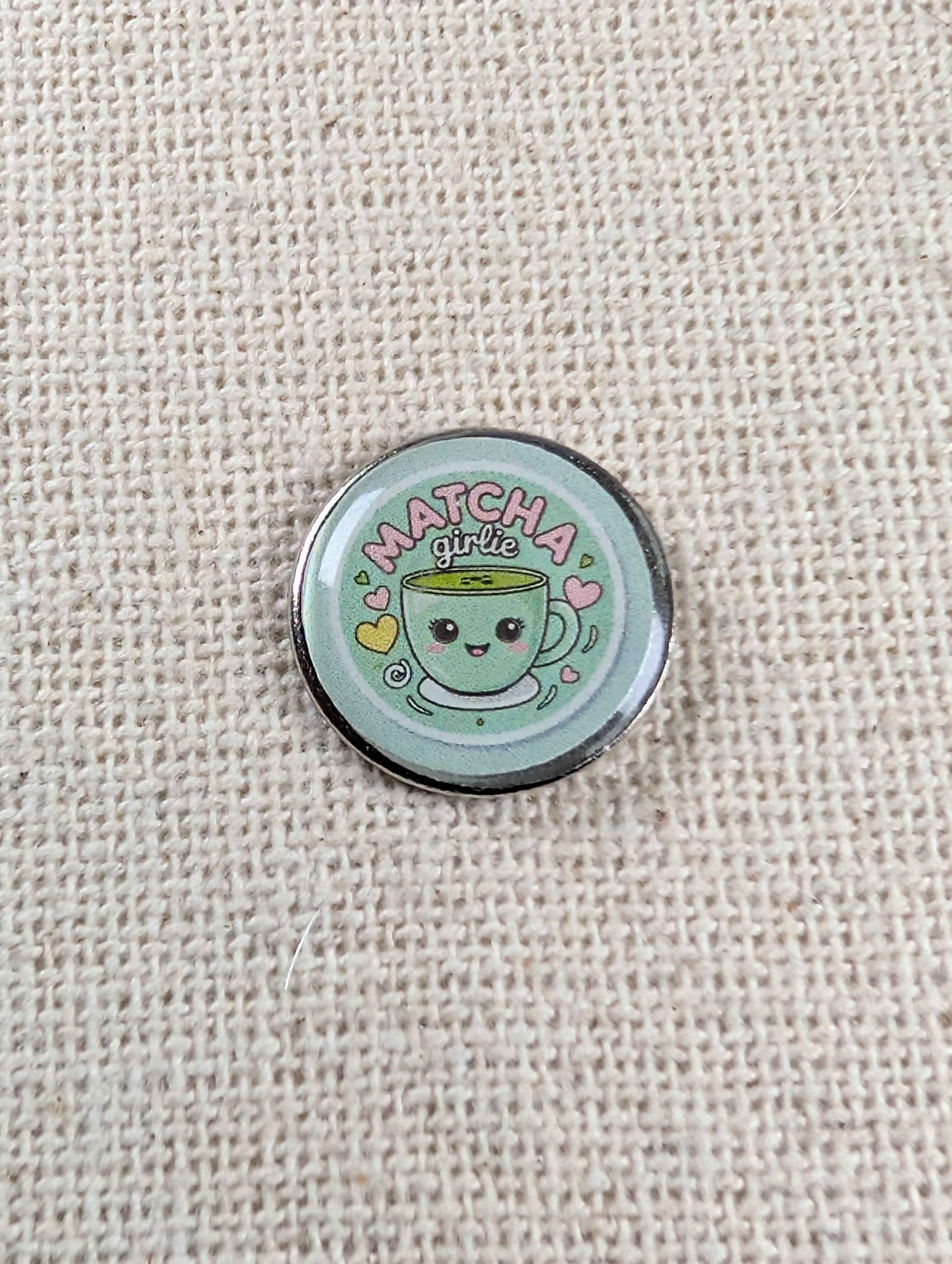 Matcha Girlie – Matcha Lover Themed Badge – Large Resin Topped Pin Badge