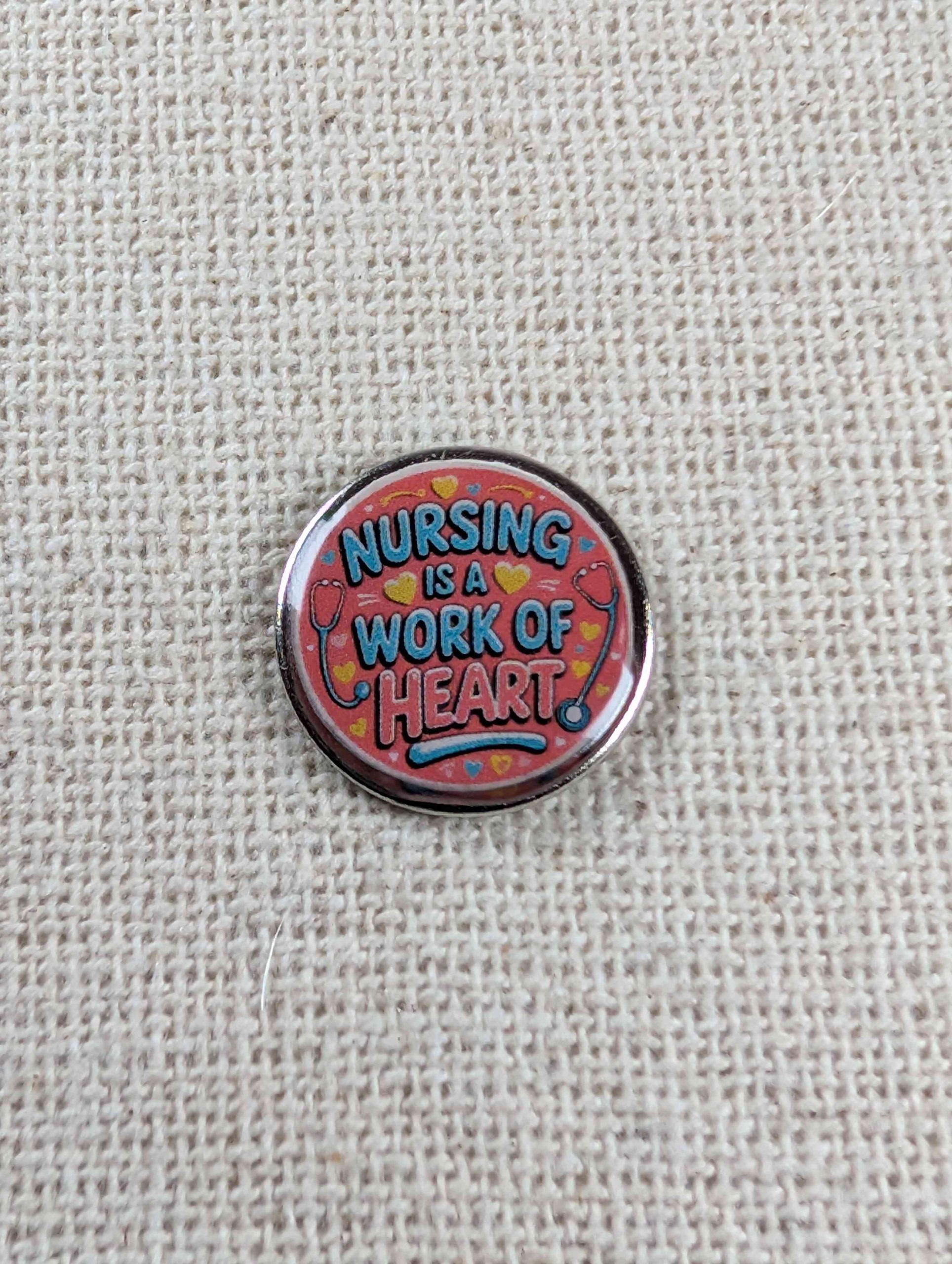 Nursing is a Work of Heart – Nurse Themed Badge – Large Resin Topped Pin Badge