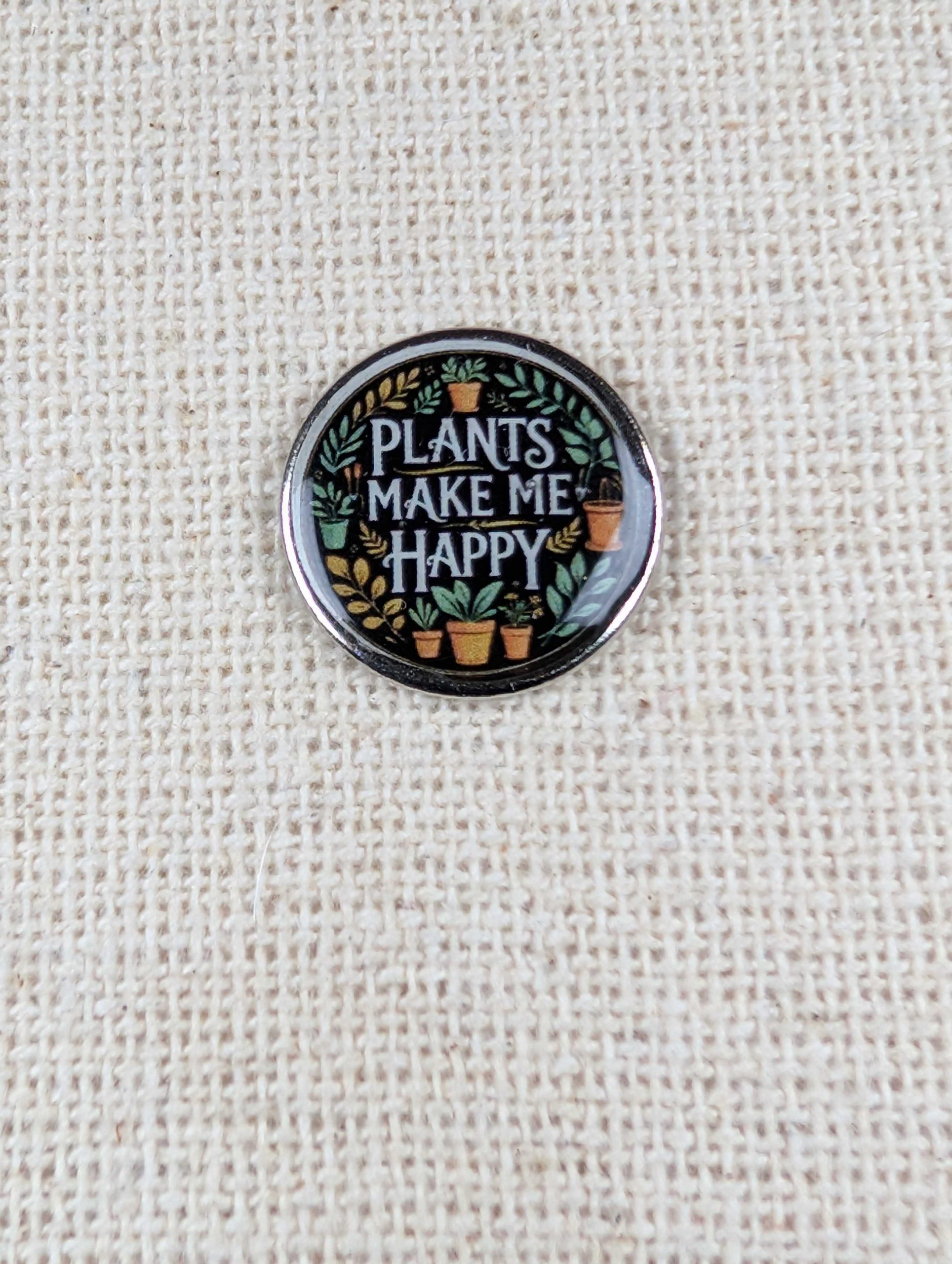 Plants Make Me Happy – Gardener Themed PIN – Large Resin Finished Pin – Black